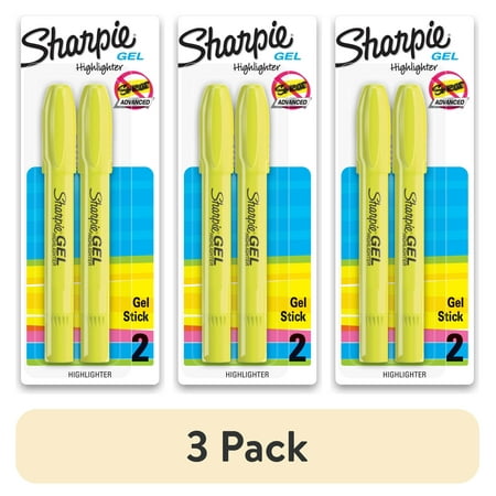 (3 pack) Sharpie Gel Highlighters, Bullet Tip, Fluorescent Yellow, 2 Count