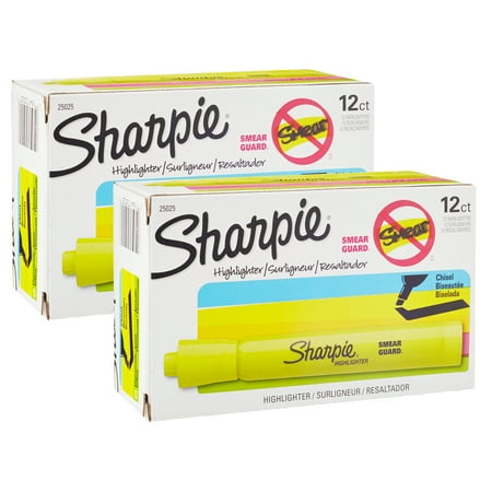Sharpie Tank Style Highlighters, Chisel Tip, Fluorescent Yellow, 12 Per Pack, 2 Packs