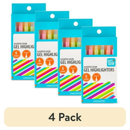 (4 pack) Pen+Gear Gel Highlighters, Round Tip, Assorted Colors, 6 Count