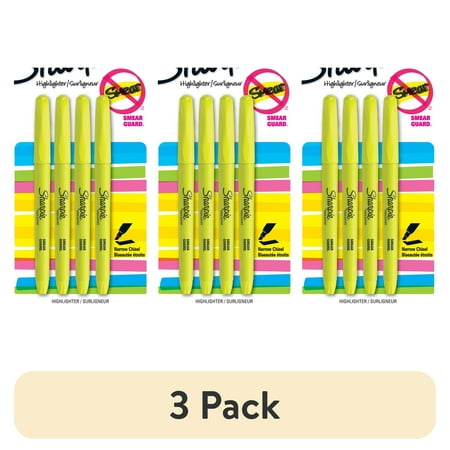 (3 pack) Sharpie Tank Style Highlighters, Chisel Tip, Fluorescent Yellow, 4 Count