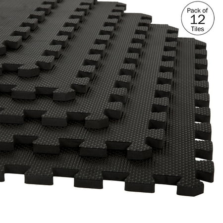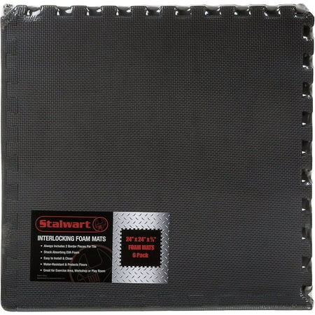 Stalwart Interlocking EVA Foam Floor Tiles for Home Gym, Yoga Mat, Workout Equipment, or Child's Play Surface – Set of 6, (Black)