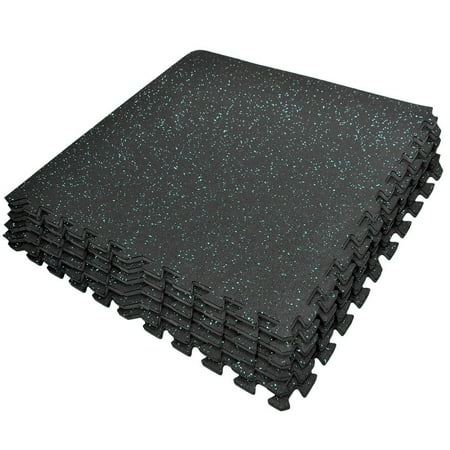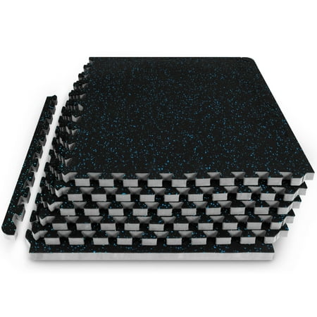 ProsourceFit Rubber Top Exercise Puzzle Mat 3/4-inch, 48 SQFT, 12 Tiles, EVA Foam Interlocking Tiles for Home Gym Protective Flooring for Equipment and Workouts, Blue