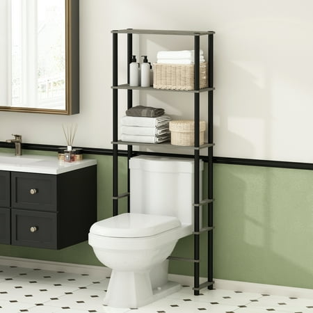 Furinno Turn-N-Tube Freestanding Over-The-Toilet Bathroom Shelves, Storage Rack with 3 Shelves, Grey Oak/Black