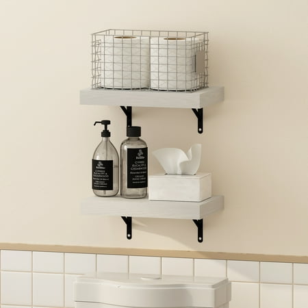 Furinno Tanna 15-Inch Wall Mounted Bathroom Floating Display Shelves, Tobacco Oak, Set of 2