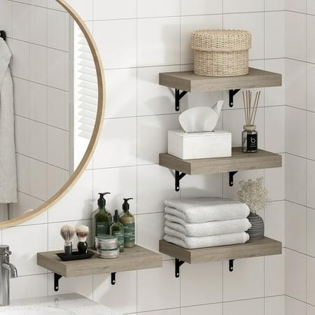 Furinno Tanna 15-Inch Wall Mounted Bathroom Floating Display Shelves, Natural, Set of 4