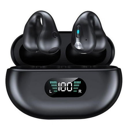 Alpha Digital Wireless Bluetooth Bone Conduction Ear Clip Earbuds, Black