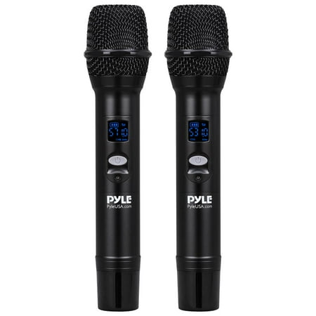 Pyle UHF Wireless Microphone System - Portable Digital Audio Sound Mixer Receiver w/ Bluetooth, 2 Handheld Mic, Receiver Base, Addressable Frequency, Great For Home Karaoke & Professional Use, Black