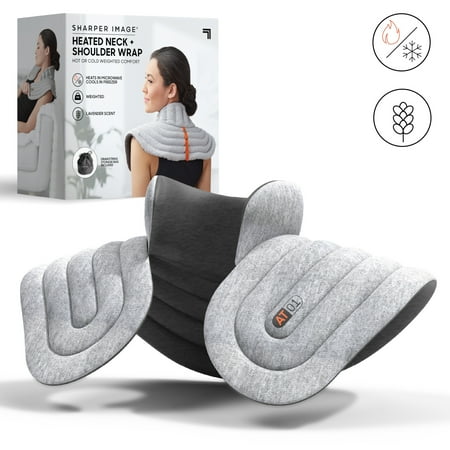 Sharper Image® Heated Neck & Shoulder Aromatherapy Wrap, Lavender Scented Hot & Cold Therapy, Weighted Muscle Pain & Stress Relief, Luxurious Soft Plush, Adjustable Fit, Relaxation & Self-Care