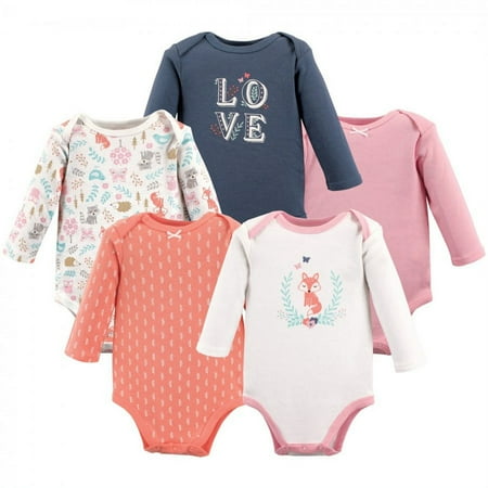 Hudson Baby Cotton Long-Sleeve Bodysuits, 5-Pack, Newborn- 24 Months