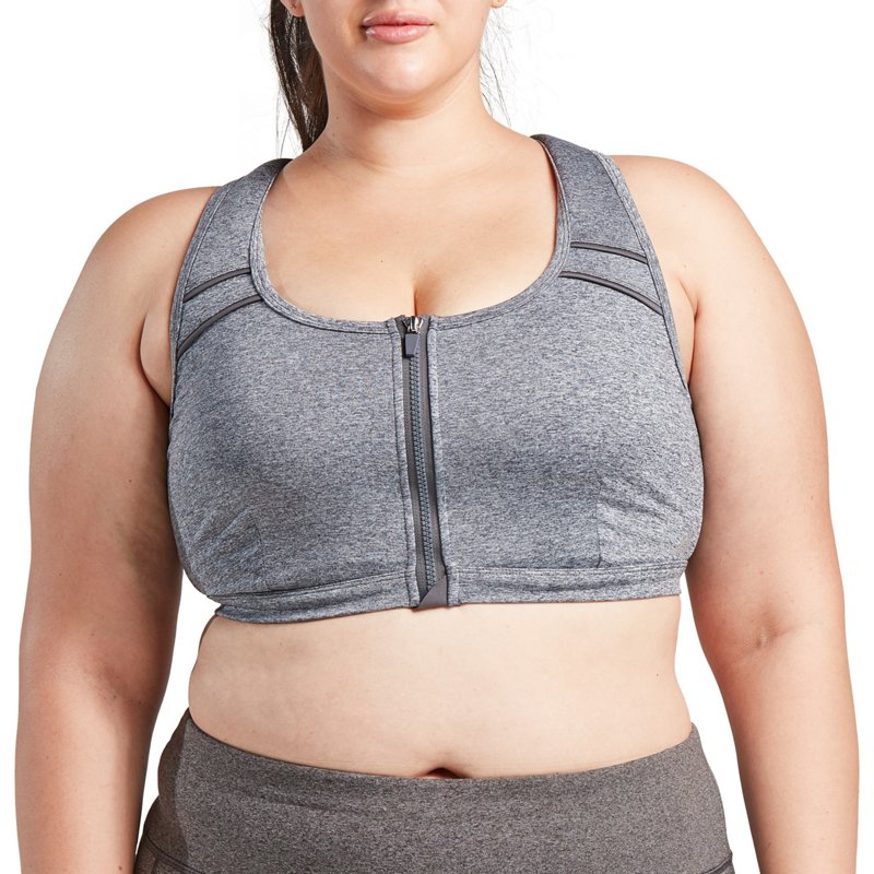 Fruit of the Loom Women's Front Close Builtup Sports Bra, Black Hue/Heather Grey 2-Pack, 48