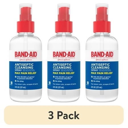 (3 pack) Band-Aid Brand Pain Relieving Antiseptic Cleansing Spray, 8 fl. oz