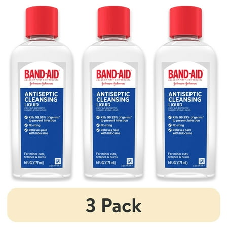 (3 pack) Band-Aid Brand Pain Relieving Antiseptic Cleansing Liquid, 6 fl. oz