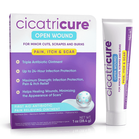 Cicatricure First Aid Bacitracin Antibiotic Ointment | Effective Relief for Minor Cuts, Scrapes, Burns, Itch, and Scars - 1 oz