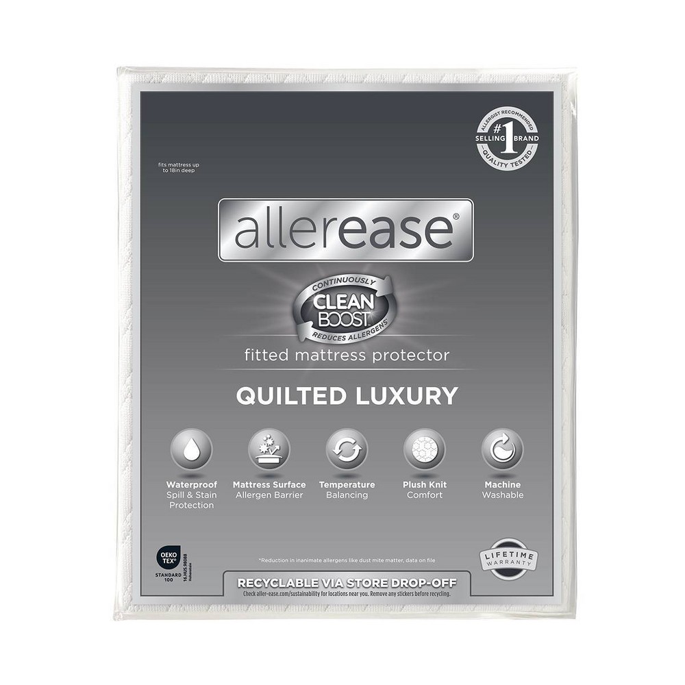 Allerease Queen Maximum Waterproof Allergy and Bedbug Protection Zippered Mattress Protector: White, 17" Depth, Moisture-Wicking