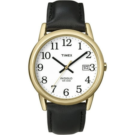 Timex Men's Easy Reader 35mm Watch – Gold-Tone Case White Dial with Black Leather Strap