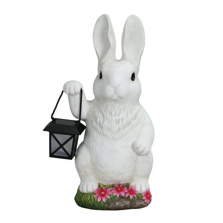 Mainstays Outdoor White Bunny Solar Lantern Garden Statuary, 7.25 in L x 5 in W x 13.75 in H
