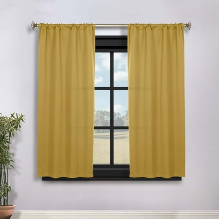 Superior Blackout Solid Light Filtering Rod pocket Curtain Panel Set, 36"X 63", Yellow Mustard