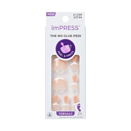 imPRESS Press On Toenails, 'Blanc Chic', White French, Short Squoval, 24 Count