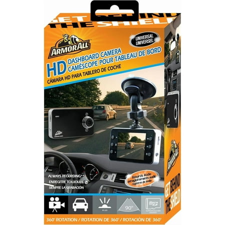 Armor All Universal HD Car Dash Cam, 2.4-Inch Display with Motion Detection and 360-Degree Rotation