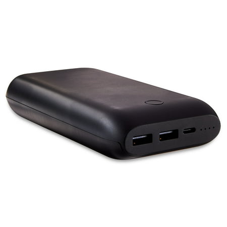onn 20,000 mAh Portable Battery with fast charging 20W PD, dual USB ports and USB-C, Black - Compatible with iPhone, Samsung Galaxy, Note, Pixel Devices, iPad, Airpods and more