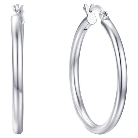 Brilliance Fine Jewelry Click Top Hoop Earrings in Sterling Silver 30mm