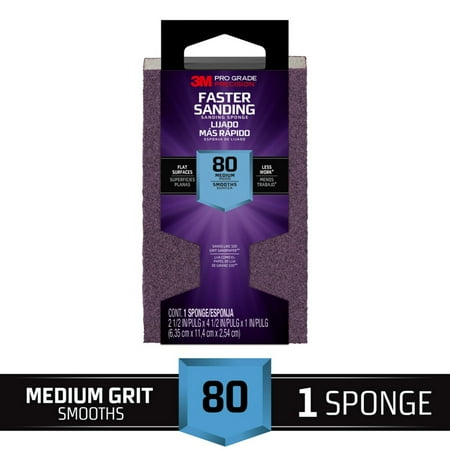 3M Pro Grade Precision Sanding Block, Faster Sanding, 2.5 in. x 4.5 in. x 1 in. , 80 Grit, Medium, 1 Sponge