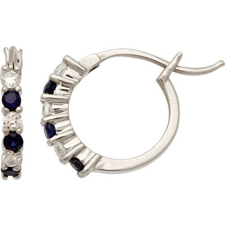 .60 Carat T.G.W Created Sapphire and .60 Carat T.G.W. CZ Sterling Silver Hoop Earrings