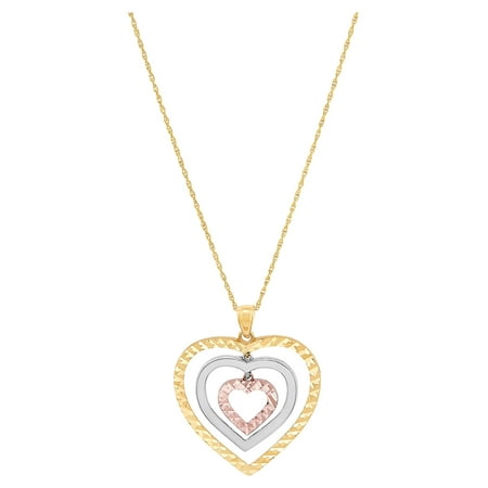 Brilliance Fine Jewelry 10K Tri Tone Gold Triple Open Heart Pendant, 18"