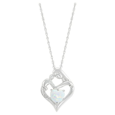 Brilliance Fine Jewelry Created Opal Diamond Heart in Silver Silver Pendant, 18"