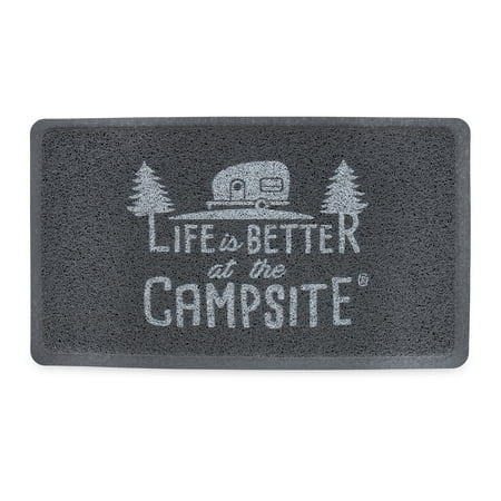 Camco "Life is Better at The Campsite" Camper Scrub Rug/Door Mat, Looped PVC, Gray and White (53197)