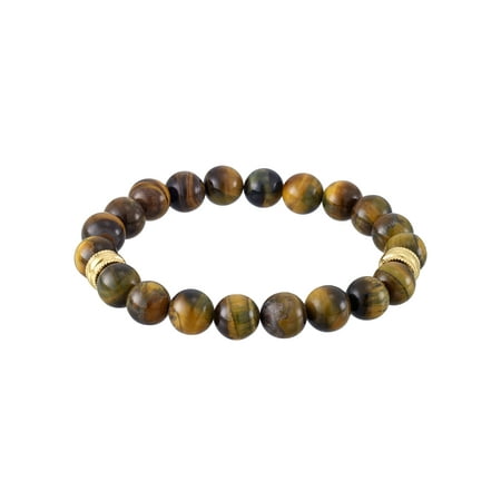 Focus for Men by Focus Men, Tiger's Eye Stretch Bracelet in Stainless Steel with Gold Tone Ion Plating, 8.5"
