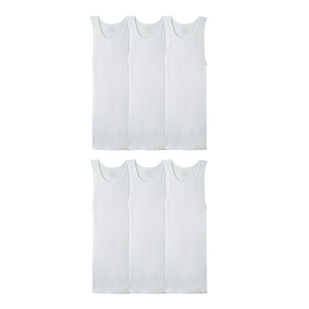 Fruit of the Loom Men's EverSoft Cotton A-Shirt White Tank Top Undershirts, 6-Pack, Moisture-Wicking, Sizes S-5XB