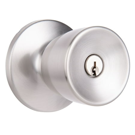 Brinks Keyed Entry Classic Bell Style Doorknob, Satin Nickel Finish