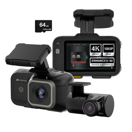 YADA Roadcam AI PLUS, AI-Powered 4K Dash Cam with 1080p Rear Cam, Full-Coverage Driver Assistance