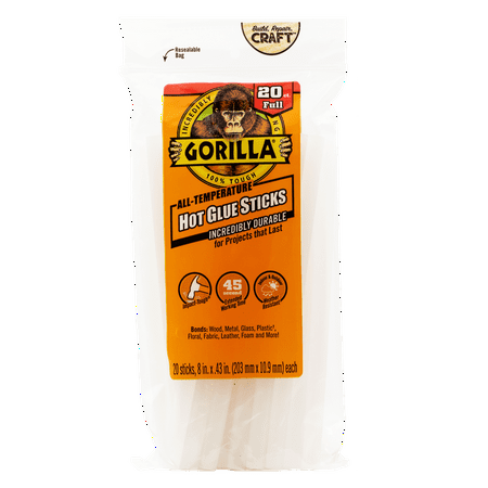 Gorilla Glue Clear Hot Glue Sticks, 8" x .43", 20-Count, Full Size