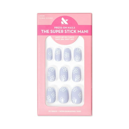 Olive & June Super Stick Mani Round Short Press-On Tabs, Floral Doodle, 32 Pieces