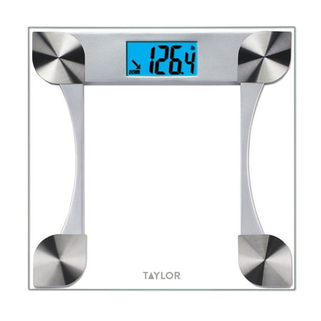 Taylor 12.2" x 12.2" Weight Tracking Glass Body Weight Scale Battery Powered, FSA HSA Eligible, 440 lb Capacity, Clear