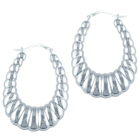 Brilliance Fine Jewelry Women's Rhodium Plated Sterling Silver High Polished Oval Shrimp Adults Hoop Earrings