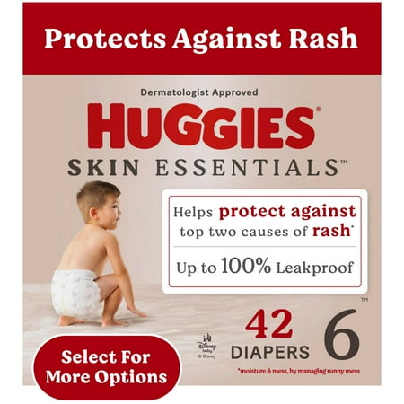 Huggies Skin Essentials Baby Diapers, Size 6 (35+lbs), 42 Count (Select for More Options)