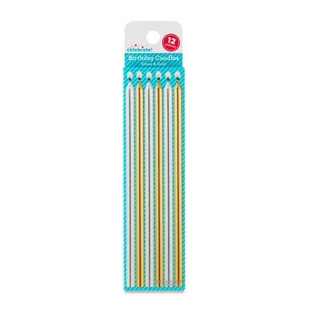 Silver/Gold Metallic Birthday Candle Set, 12 Pieces, by Way To Celebrate