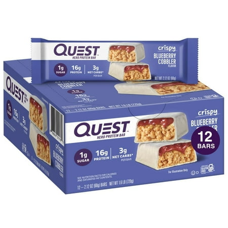 Quest Blueberry Cobbler Crispy Protein Bar, Low Carb, High Protein, 12 Count