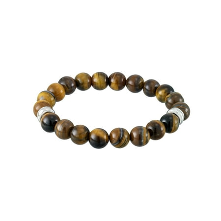 Focus for Men by Focus Men Tiger's Eye Stretch Bracelet in Brilliant White Stainless Steel, 8.5"