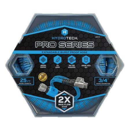 HydroTech Pro Series 3/4" x 25ft Expandable Garden Hose - Kink-Free, 2x Flow, Lightweight