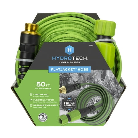 HydroTech FlatJacket 5/8" x 50ft Flexible Garden Hose– Kink-Free, Lightweight, Burst-Proof