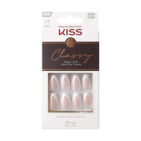 KISS Classy French Tip Press On Nails, Silk Dress, White, Medium Coffin, 28 Count