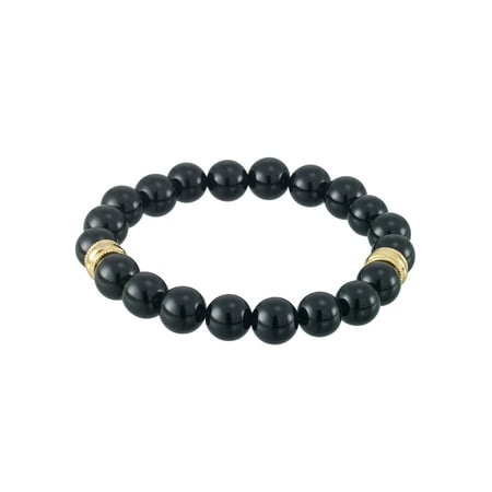Focus for Men by Focus Men, Black Agate Stretch Bracelet in Stainless Steel with Gold Tone Ion Plating, 8.5"